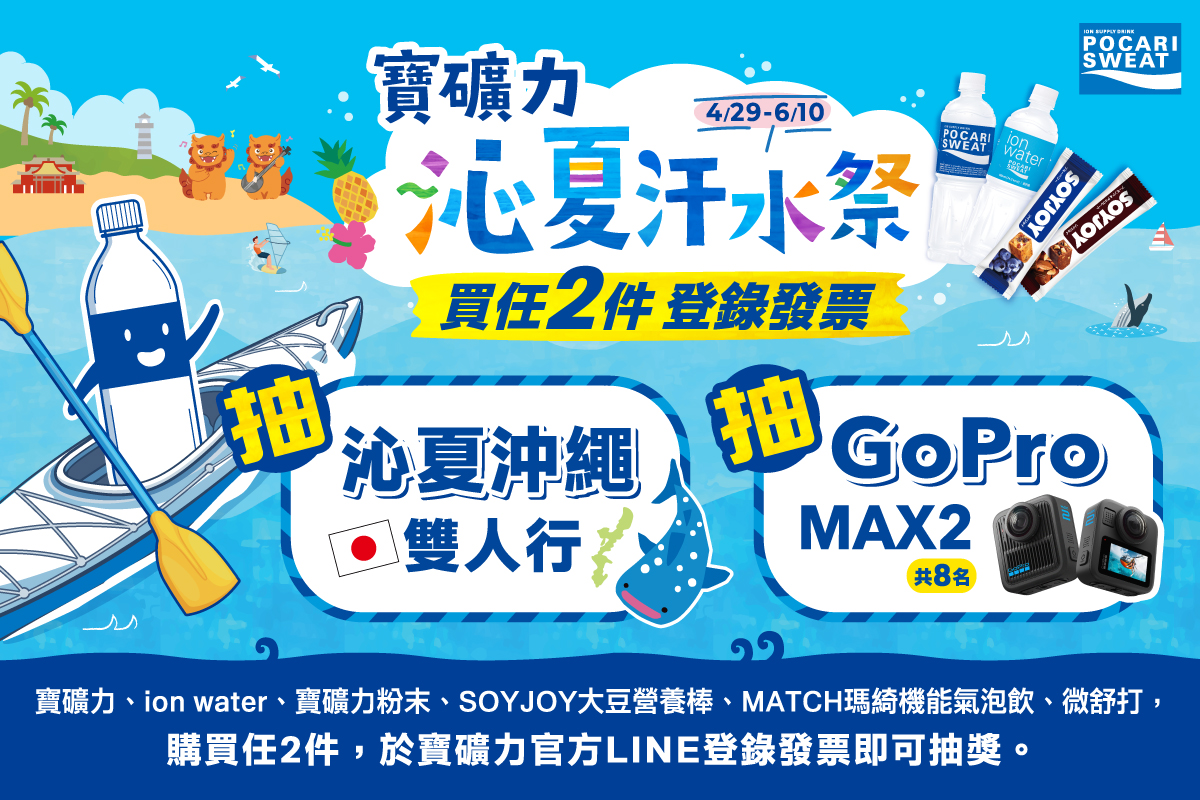 2. 登錄方式: 加入寶礦力水得LINE官方帳號好友,憑購買發票完成登錄流程,即有機會抽中「沖繩 沁夏拾光雙人行」、「GoPro MAX2 360度多功能攝影機」,於7-ELEVEN及全家便利商店購買,還可再抽獨家好禮!