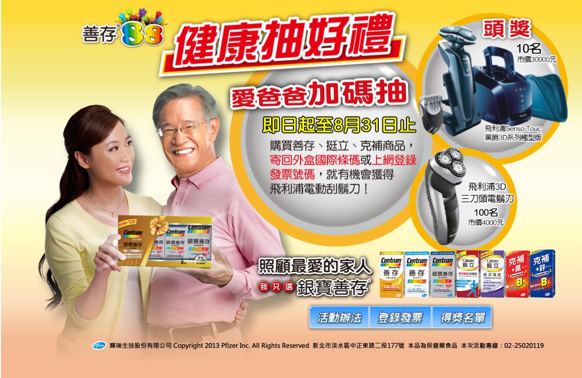 購買善存、挺立、克補等系列商品,就有機會獲得飛利浦電動刮鬍刀。
